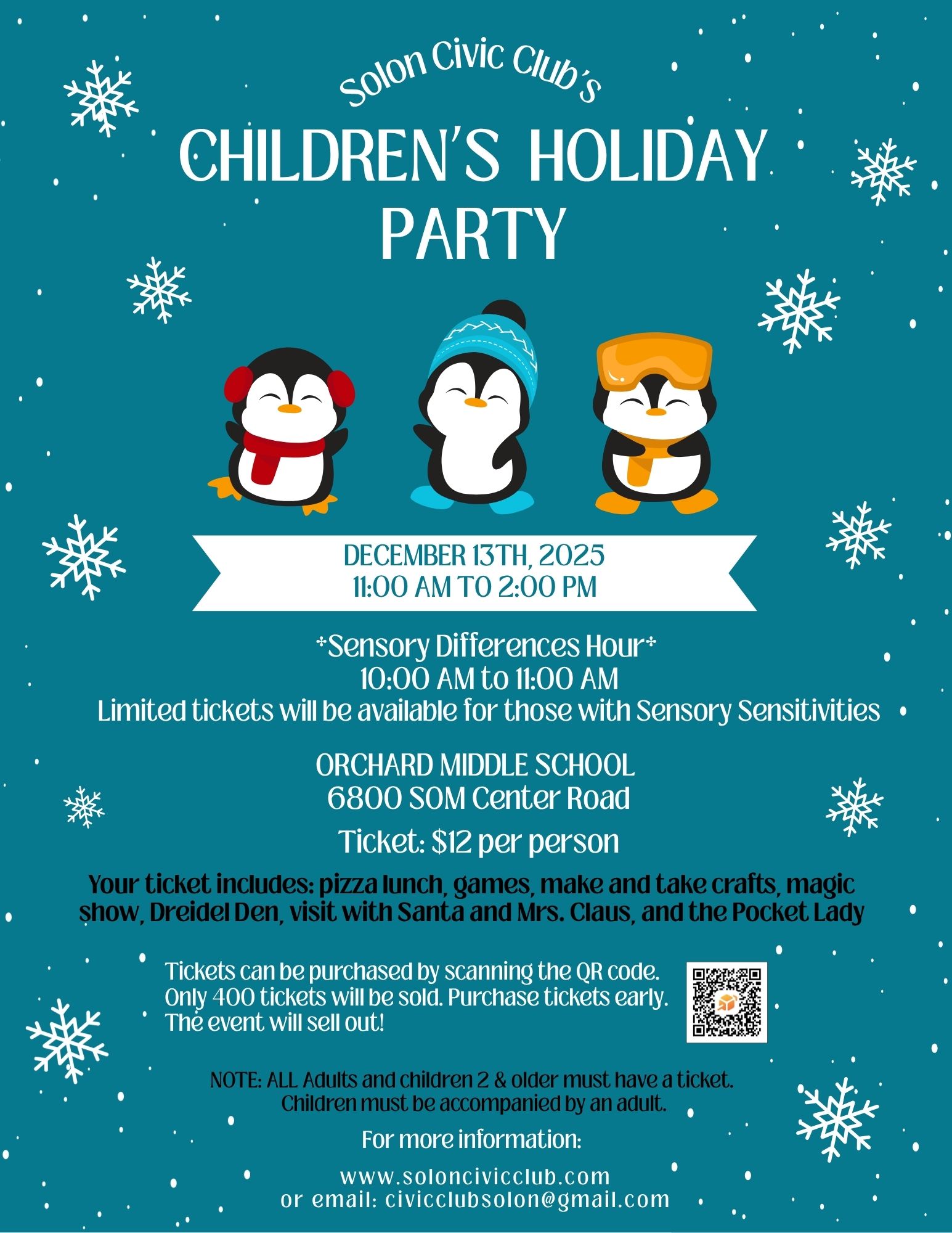 Click to download PDFTickets: $12 per person Available for purchase HERE Ticket includes: pizza lunch, games, make and take crafts, magic show featuring J.R. Grieco, Dreidel Den, visit with Santa and Mrs. Claus, and the Pocket Lady ALL Adults and children 2 & older must have a ticket (NO exceptions). Children must be accompanied by […]